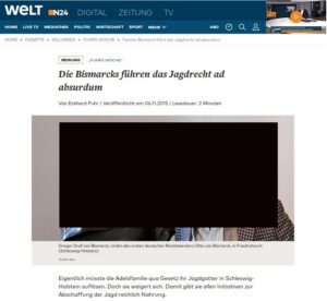 Hier noch ein Artikel eines Jägers darüber, dass auch Schleswig-Holstein die Gatterjagd verboten und Bismarcks Jagdgatterbewilligung aufgehoben hat:
